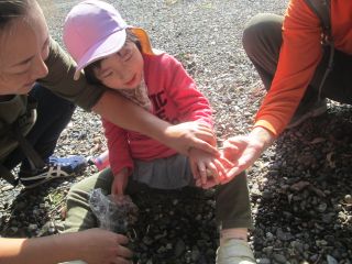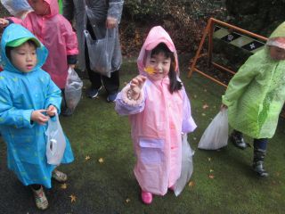 あいにくの雨模様でしたが、カッパを着てのお散歩になれていた年長児は雨が
