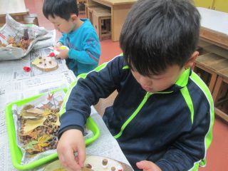 むかばきレストランで食事をとったり、拾った木の実で工作もしましたよ~!