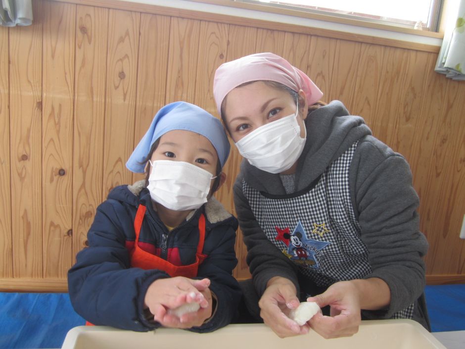 お父さんお母さんと丸めて、きなこ餅、