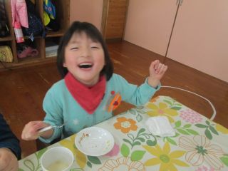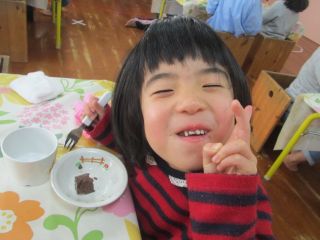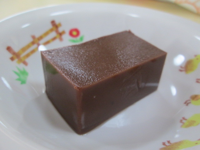 お昼寝のあとは体もポカポカしていてみんなほっぺもピンク色。今日のおやつのショコラようかんは冷たくてのどごしも良くてみんなの好きなチョコレート味で大好評でした。ガブッと食べずに少しずつ味わっている姿はなんとも幸せな光景でした。