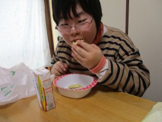 なかまに帰ってくるなり、すぐに準備をして食べ始めようとするなど、“自分で好きな物を買って食べる”ことは格別で、とても幸せそうに食べていました。