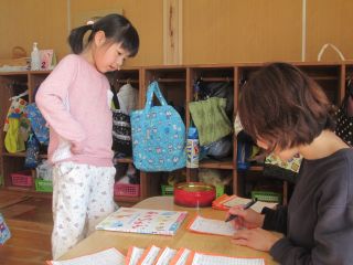 毎週金曜日は絵本貸し出しデー。金曜日に借りて帰って月曜日に持ってきて絵本係のお母さんに返す流れになっています。絵本を借りる工程は次の通り。⓵ 絵本バッグを用意する⓶ 絵本を選ぶ⓷ 並ぶ⓸ 自分の名前を言ってカードに記入してもらう⓹ 絵本バッグに絵本を入れる(ここも意外と難しい!)考えること盛沢山!週末のお楽しみの一つになっています。