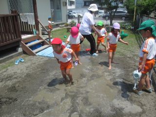 5月も後半にさしかかり、汗ばむ陽気がつづくまいにち。まんまるのみんなは外あそびをするときにたくさん水を使ってあそびます。庭の一角にある畑に水やりしたり砂場に山を作って水でかためたりみんなの通るところに溝を作ってそこに水を流し川を作ったり。大きな川ができるとみんな喜んでその中ではしゃいだりついには座り込むこどもも・・・笑そして先日から植木鉢のイチゴが真っ赤に実りはじめました!みんなでジャンケンして取り合いが起きるほどの争奪戦!甘酸っぱいけどとっても美味しかったね☆