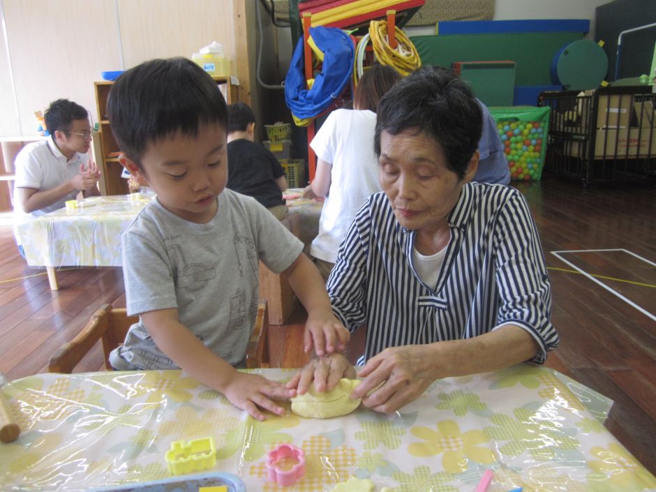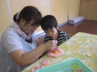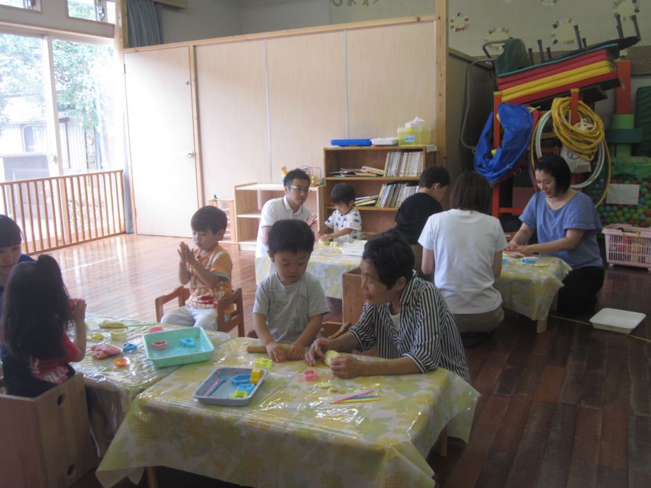 29日は、ちょうちょグループさんの、月に1度の「親子保育」でした!今回は、小麦粉粘土あそびをしました。大好きなお母さん、お父さん、おばあちゃんと一緒に型抜きをたくさんしました。「クジラをつくって~!」とリクエストしたり…電車の型をとって連結したり、楽しい1日でした♬