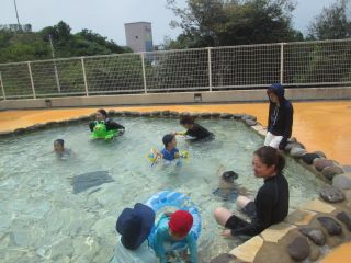 親子保育で門川の心の杜プールに