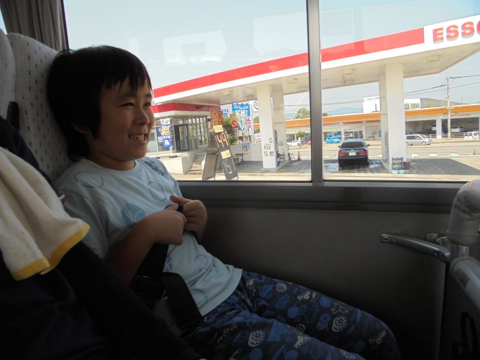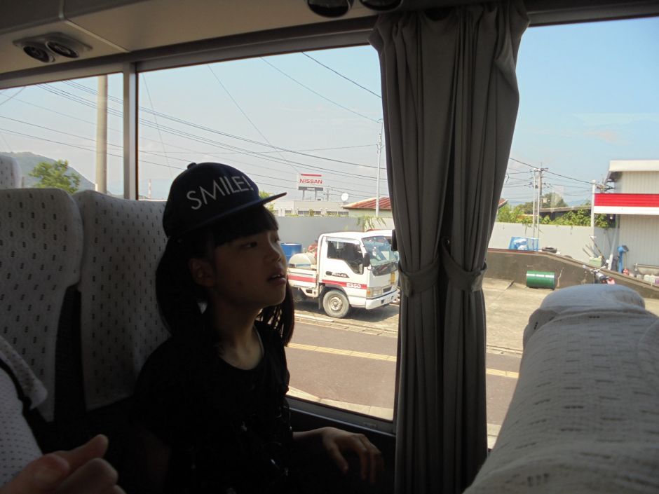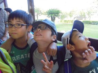 バスに乗り込みいざ出発!お友だち同士でお喋りしたり、「何?何?(門川総合文化会館どこかな?)」と行き先を気にしながら外の景色に目を向けるなど、それぞれ移動の時間を楽しんでいました。