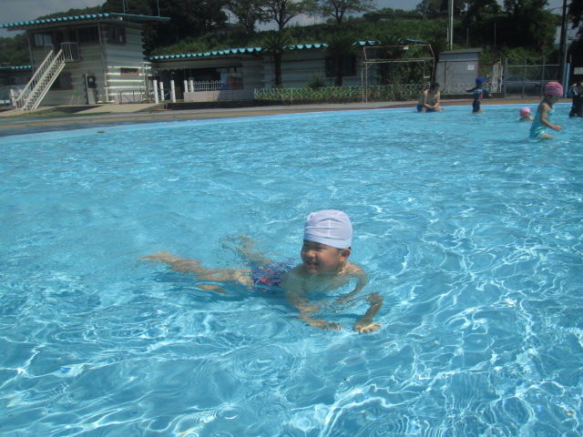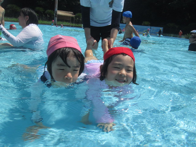 みつばちグループの夏は大忙し!西階プールに3回門川心の杜プールに1回も行くんです♪今日は2回目の西階プールの日。1回目は「初めて来る場所」だったから、ドキドキしていつものように遊べなかった子どもたちも、2回目になると、みんなでワニ歩きをしてみたりダイナミックに水の掛け合いをしてみたりと慣れてきた様子。あと一回、いけるから大きいプールであそぶ楽しさ水遊びの楽しさを改めて感じてくれるといいな♪お手伝いに来て下さったお母さん方もありがとうございました!