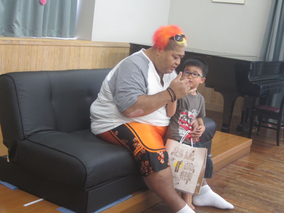先月末、コニちゃんがあははにあそびに来てくれました。コニちゃんを見てビックリ!体が大きいのはもちろん、うたとウクレレが上手で、しかも、お話がおもしろくて…とっても楽しい時間を過ごしました。 みんなで踊ったり、ハイタッチしたり質問コーナーもありました。コニちゃんの好きな食べ物は『スニッカーズ』というチョコレートのお菓子だそうです。 コニちゃん、楽しい時間をありがとう!