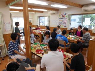 ぷらたなすのご家族にも参加していただいて交流会をしました。 みんなで分担して食事を準備し、食べながら、おしゃべりしながらの楽しいひと時を過ごしました。 日頃の皆さんの様子も直接お話することができ、良い交流ができました。 4月から、仕事や余暇の様子を撮りためてDVD鑑賞もしましたが、「みんな真面目にがんばってますね!」との感想も聞かれました♪
