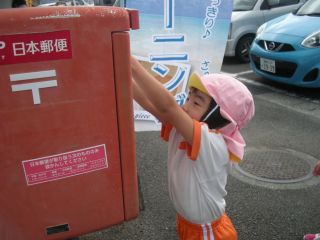 出来上がったハガキは、車に乗ってご近所にあるポストに投函しに行きました!