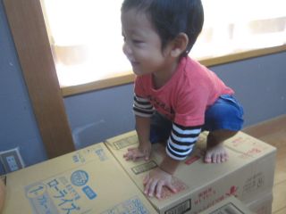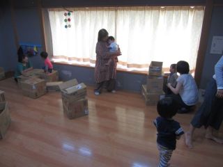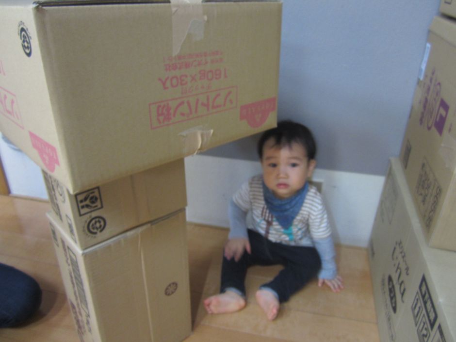 てんとうむしグループさんでダンボールあそびをしました♪ダンボールをたくさん集めてたか~く積み上げ、「せ~の」でみんなで倒してあそんでいます。何個もつなげてのりものに見立ててお母さんに押してもらったり、おうちを作って隠れてみたりと思い思いにおかあさんと楽しんでいます!