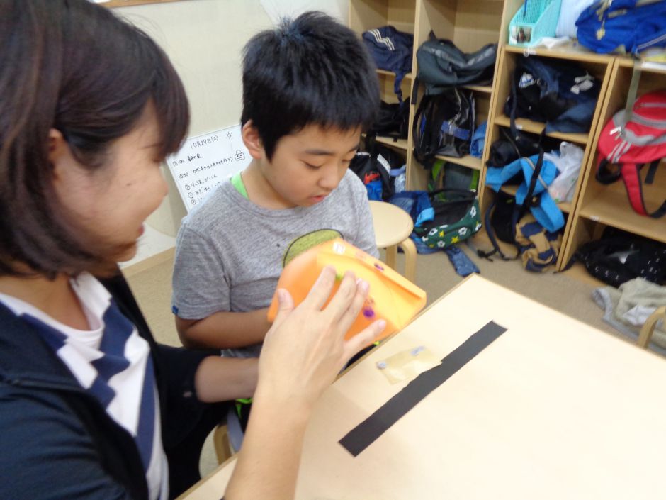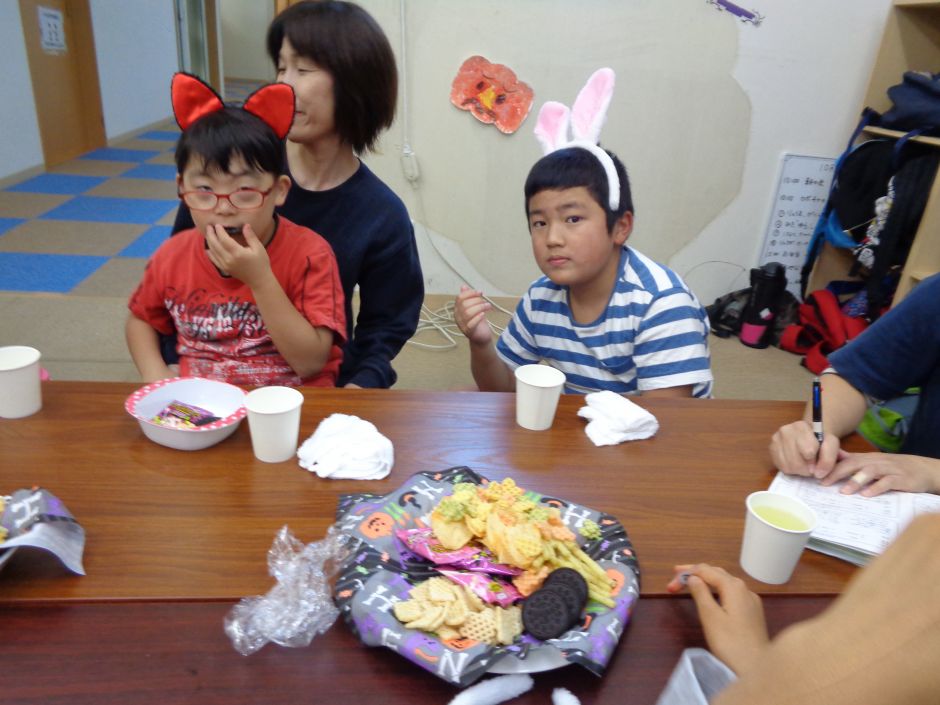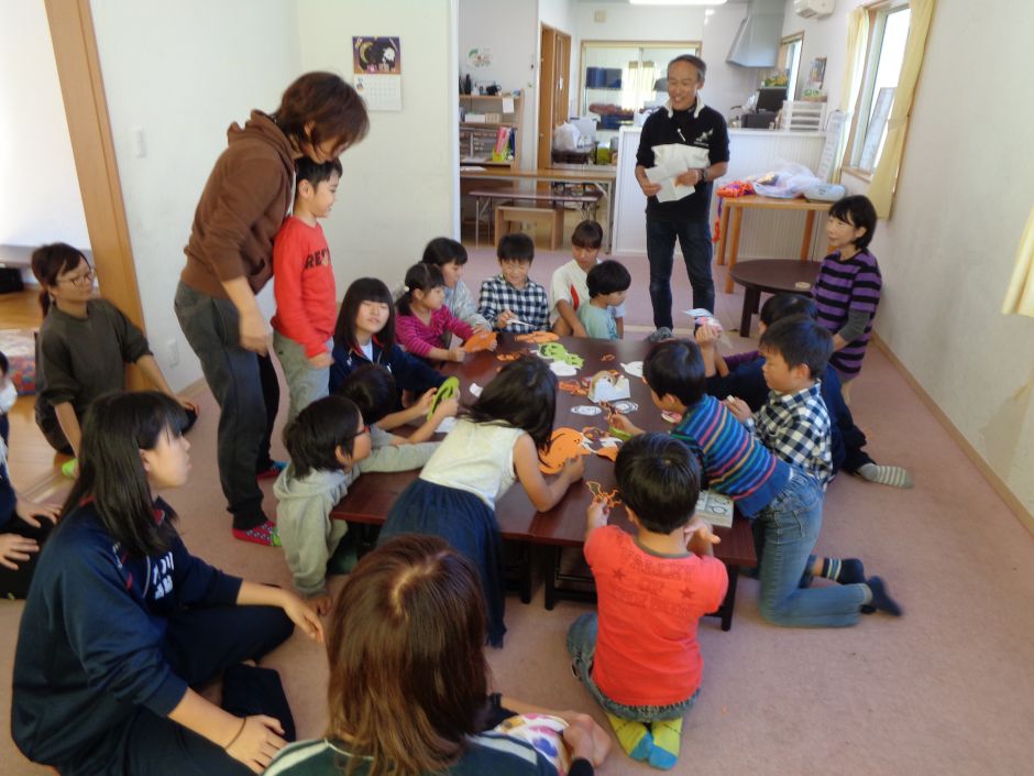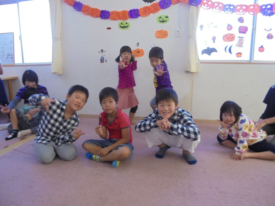 今年もこの季節がやってきました!HAPPYハロウィン♪「今日ハロウィンパーティーやろ~?」「仮装する~!」と子ども達は楽しみに登園していました。かぼちゃオバケの飾りやおやつを入れる箱をみんなで作り、準備完了!ひまわりの部屋をハロウィン仕様にデコレーション。子ども達はうさ耳バンドやピカチュウの着ぐるみなど、思い思いの衣装に着替え、いざハロウィンパーティースタート!お友達や職員とワイワイ会話を楽しみながら楽しいハロウィンパーティーになりました♪