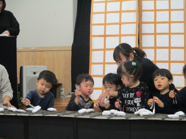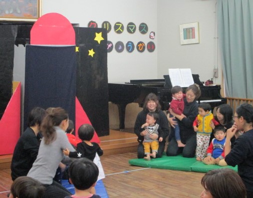 16日は、クリスマス発表会がありました!あははのこどもたちは、すべり台や絵本などを使って日頃の保育を活かした出し物をしました!ステージに立つといつもよりたくさんの人でいっぱい!!びっくりして泣いてしまう子、緊張した子もいましたが、みんなよく頑張りました♪♪