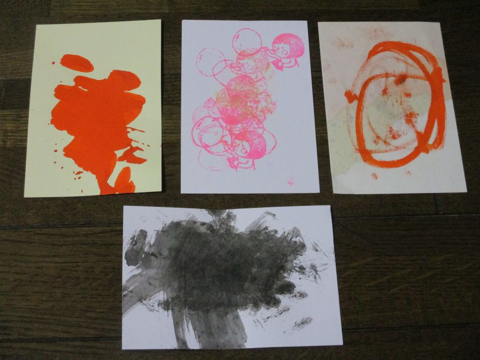 はやりの「消しゴムはんこ」の押し方にも、それぞれの個性が大きく表れました。カラーのアクセントが入ることで、文字や余白がグッと引き立ち、個性いっぱいの年賀状ができました。