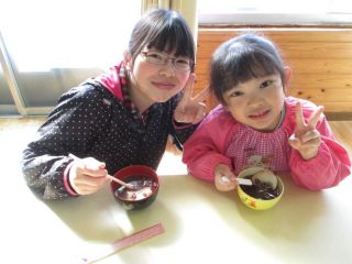 出来上がったお餅はぜんざいに入れて、おいしくいただきましたよ♪