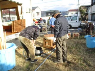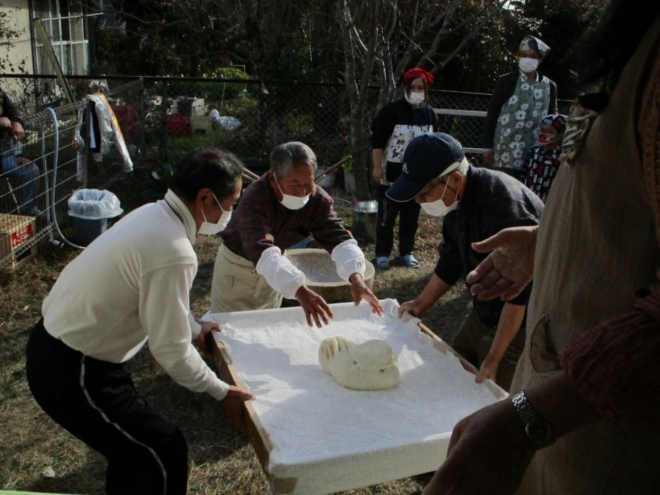 毎年1月の恒例行事としてもちつき会を行っています。いつも、もちつき保存会の方に手伝ってもらっていますが、朝早くから準備をして下さり嬉しく思っています。子ども達も「あーもちつきのおじちゃん!」と喜び、地域の方との交流が出来て良い経験になっています。 いつも朝早くから、準備をして下さったり、おいしいお餅をついてくれたり丸めたりと感謝します。いつもお世話になっているもちつき会の方々で~す!!