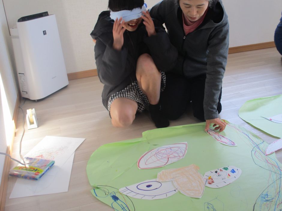 大きなパーツを想像して描くことが難しい子どもたちもいました。「これくらいかな?」と職員にヒントをもらいながら、描いて