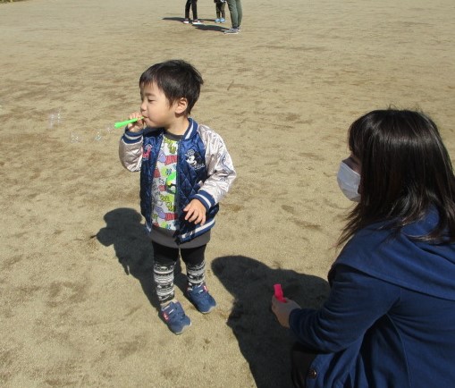 あっというまに3月!もう春ですね(*^-^*)暖かい日が増えてきたので、野地公園へ行ってきました🎵久しぶりの屋外保育でワクワクの子どもたち!!ボールを蹴って遊んだり、シャボン玉をしたり、滑り台を滑ったり、公園内の神社を参拝したり・・・みんな思い切り動いて遊んで楽しかったね(^^♪