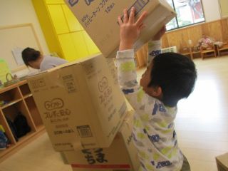 子どもたちが楽しみにしている活動のひとつにダンボールあそびがあります!大きなダンボールを積み上げてタワーやトンネルと作ってみたり、お友だちと協力しておうちを作ったりと力作揃いです‼子どもたちの自由な発想には毎回驚かされますね♪