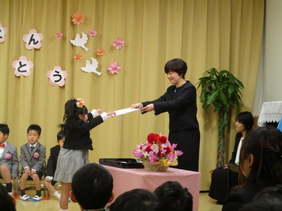 3月16日にみつばちグループさん10名の卒園式が行われました。 いつも以上に緊張した表情の子ども達でしたが、卒園証書を貰う際は凛々しい姿が見られ、 「一年生になったら」「まんまる」の歌を元気よく歌っていました。 4月より一年生になるみつばちグループの子ども達です!新しいお友だちと新しいスタートが 始まると良いな~(^-^)