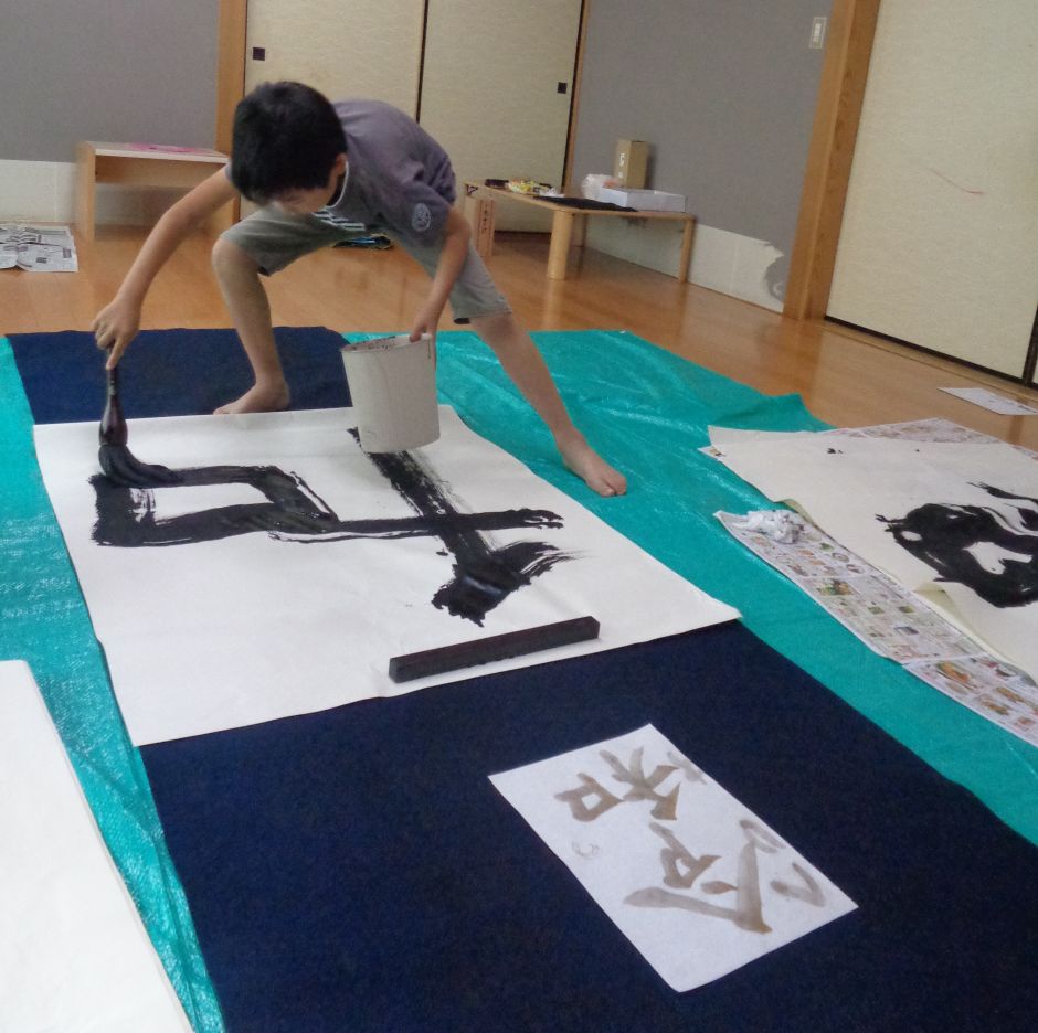 ひまわりでは、書の時間(SyoArt)として筆で書くことの楽しさを知る活動を行っています。今回のグループは『五感を使ってSyoArtを楽しむ!』というテーマでした。