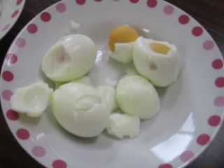 キャベツちぎり、ウィンナー切り、野菜炒め作りなどを分担しました。 みんなで取り組んだ¨ゆで卵の殻むきは、黄身が見えたりと形はそれぞれ。 ブロッコリー嫌いな子は、「1個なら食べるわ。」「これ嫌いだけど少しだけなら・・・。」と食べる子もいて、みんなで作る弁当パワーはすごい!