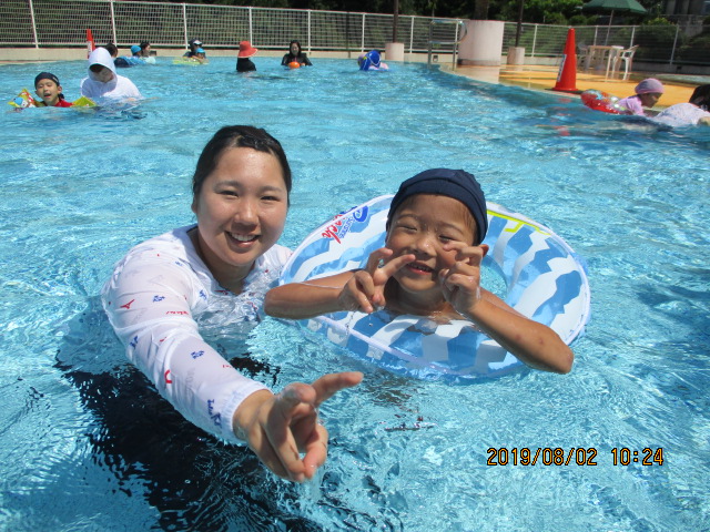 また毎日園のプールで練習をしている、「顔付け」「バタ足」「蹴伸び」をお父さんやお母さんに披露する姿もあり、また沢山褒めてもらった事で、さらに自信がついたようでした!
