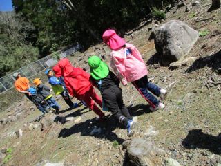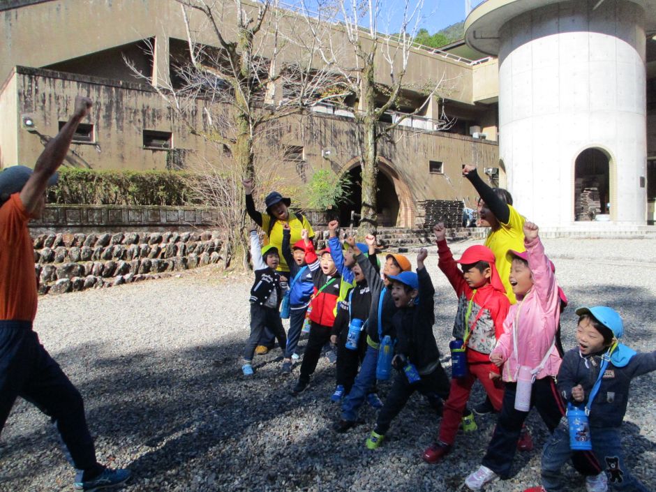 普段歩きなれていないデコボコ道に、よろけそうになりながらも前のお友達にしっかりついて歩き、落ち葉やどんぐりを見つけたり、池の鯉にエサをあげさせてもらったり、川が流れていく様子をみるなど自然を沢山身近に感じることが出来ました。