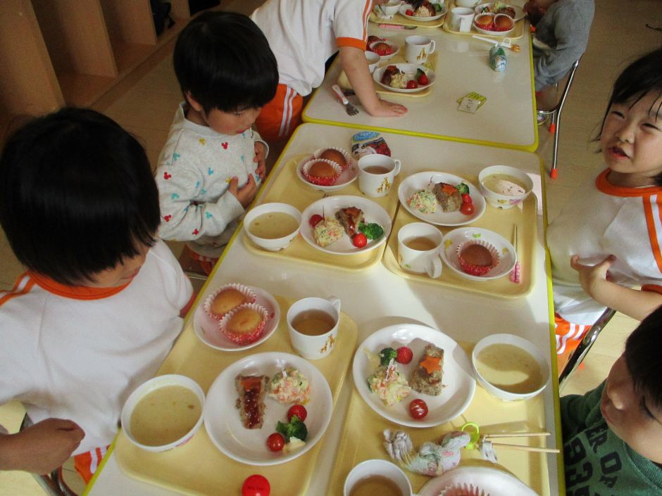 並びました。母子通園部門のお母さん方にも食べていただきました。