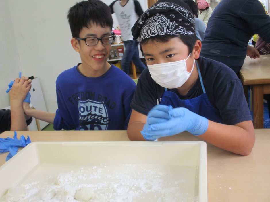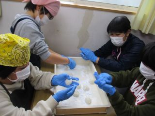 もちつきの後は、もち丸め!「まるまる~。」と言いながら丸めました。丸めた後の顔は、おし