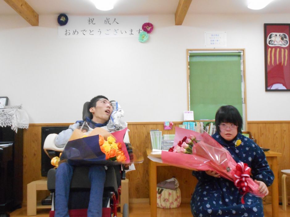 13日は成人の日でした。 ぷらたなすでは、今年度、2名の方が二十歳を迎えましたので、ささやかながら成人のお祝いをさせていただきました。 ご成人おめでとうございます(^^♪ これからも、日々、仕事も励みながらたくさんの楽しみを一緒に見つけていきましょう!