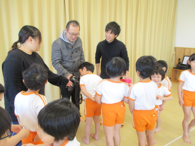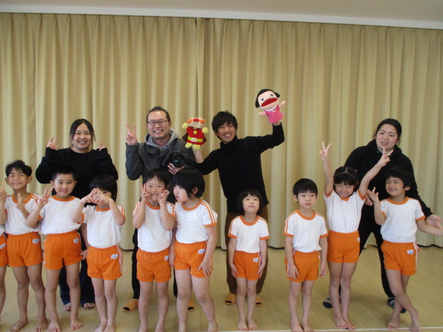 今日は「うちくら写真館」さんに集合写真をとってもらいました♪最初は少しドキドキ緊張していた子どもたちでしたが…カメラの向こうから大好きなキャラクターが飛び出してきて、にっこり(*^▽^*)とてもいい笑顔でした♪写真撮影がおわった後は、かっこいいカメラも見せてもらい大喜びの子どもたちでした♡