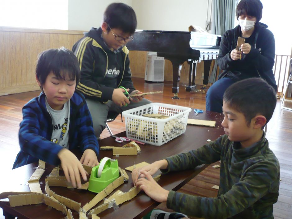 臨時休校になって1週間が経ちました。 園外での活動を控えているので、室内で没頭して遊べることに取り組んでいます。 高学年の子が、「迷路を作る!」と段ボールを細かく切り始めると、みんなで協力して準備が始まりました。 長いお休みなので、じっくり取り組めるようにしていきたいです。