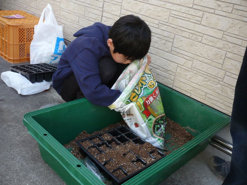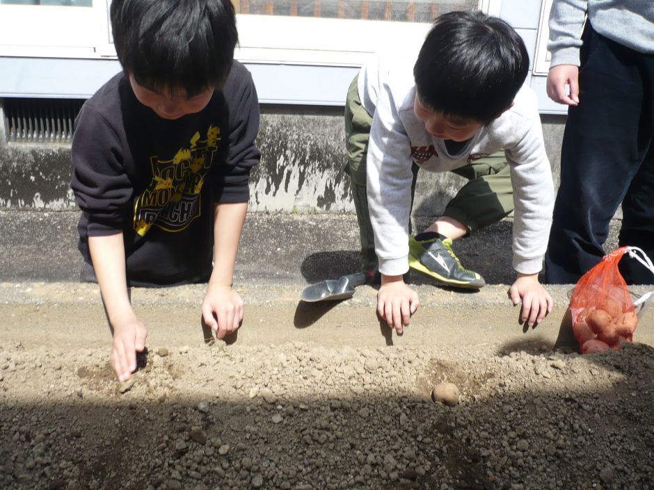 今年は、畑に花や野菜を植えてみようと、花とじゃがいもの種まきをしました。