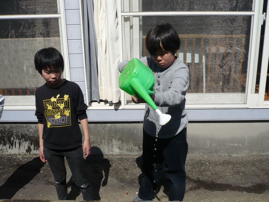 今日から、植物係が水やり、草抜きなど当番で行っていきます。