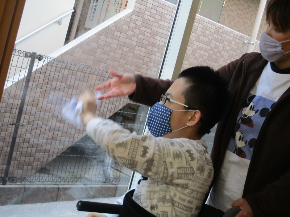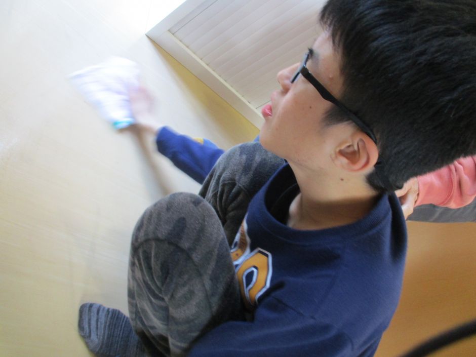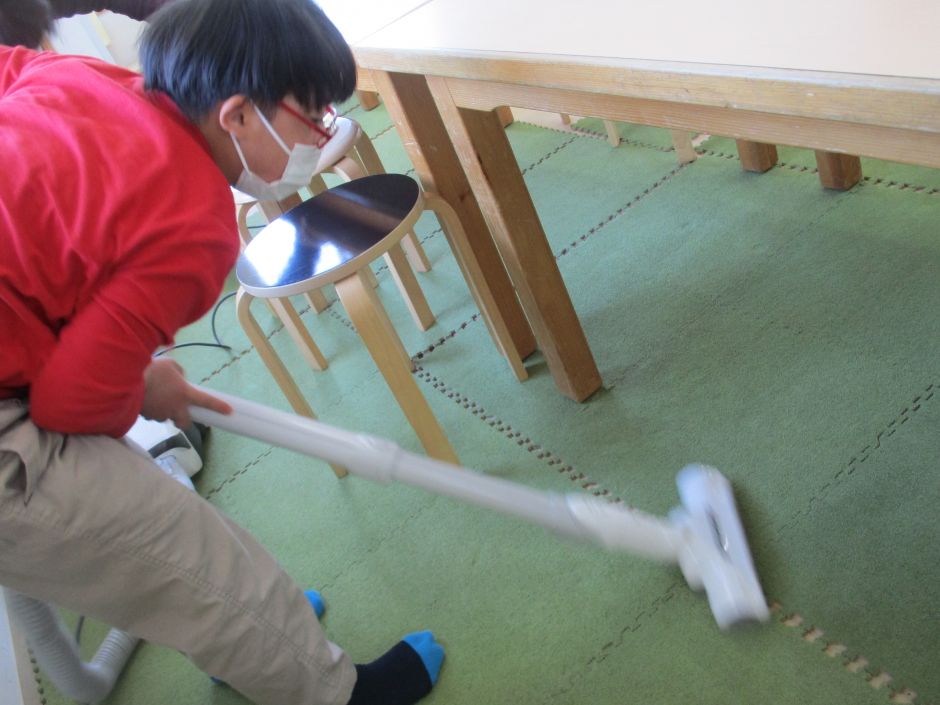 そして、職員から教え、手伝ってもらいながら、使った場所をきれいにしています。