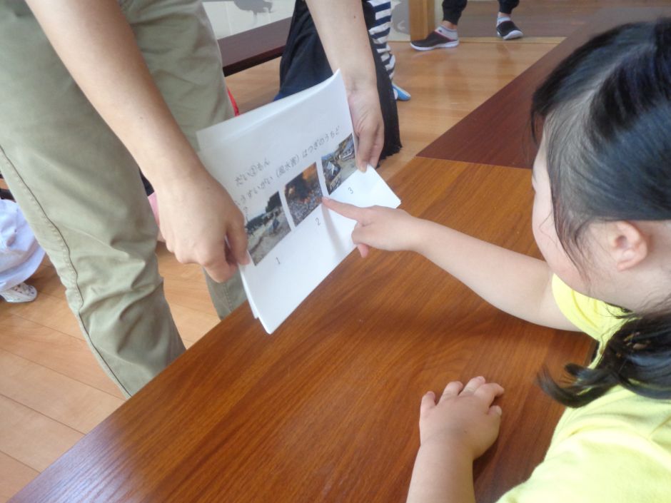 6月に入り、本格的に梅雨のシーズンになりましたので、ひまわりでは、風水害について、避難場所や避難の仕方など、みんなで勉強しました。高学年は、現実の風水害の映像を見ながら、危険なところや避難の仕方など意見を出してもらいながら、やりとりしました。低学年は、土砂災害のアニメを見た後、予め準備をしていたクイズに答えながら風水害について考える機会を設けました。映像やアニメを見て、真剣な眼差しで質問クイズに答える姿がとても印象的でした、