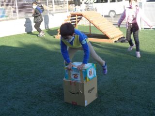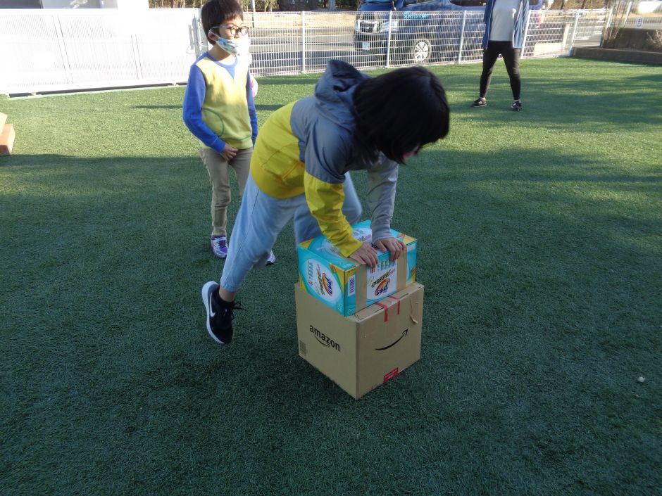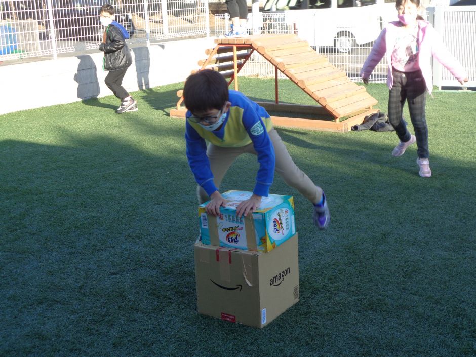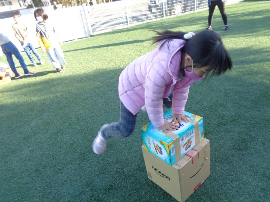 今回のチャレンジタイムでは、ひまわりお手製の跳び箱を使って跳び越える動きに挑戦しました!!