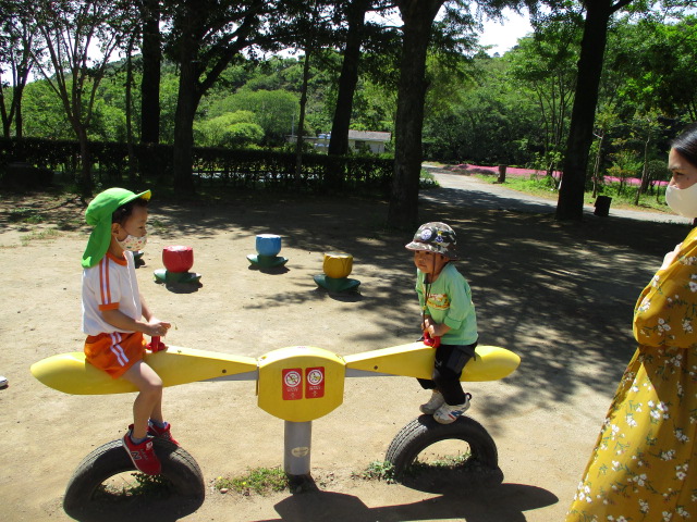 4月23日(金)、あはは・まんまるグループは春の親子遠足で植物園に行きました♪ お天気にも恵まれて過ごしやすく、絶好の遠足日和でした。あはは・まんまるグループが毎朝、踊っている体操をお父さんやお母さんと一緒に踊って楽しんだり、遊具でたくさん遊びました。 たくさん遊んだ後の楽しいお弁当タイム!