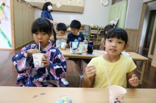 帰る時まで、お祭り気分を味わってもらうために、お迎え時にくじ引きをして景品をゲット!