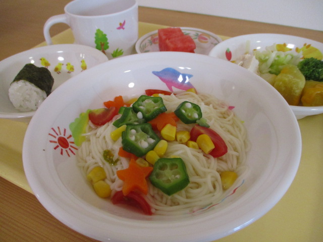 給食のメインは色鮮やかで涼しげな七夕そうめん。