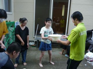子どもたちから、夏の思い出で出てきたトップ3は、①「氷・水あそび」②「おやつ買い(それぞれ希望のお菓子屋に)」③「お泊り会」でした。体が大きくなった子どもたち、みんなでプールの活動が難しかった分、毎週の庭でおもいきり¨水浴び¨はとても楽しかったようです。またおやつ代の500円を手に、自分の好きなお菓子屋に行き、自分で好みのおやつを買えたこともうれしかったようです。