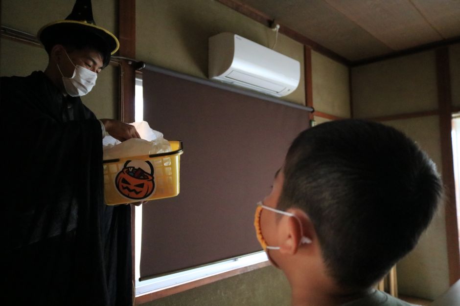 待ちに待ったハロウィンパーティー♪お面や仮装をつけてパーティーを楽しみました。じゃんけんゲーム どっちでしょうゲーム あたり探しゲームたくさんのゲームで盛り上がった後は・・・ラスボスのところへお菓子をもらいに行きました。恐る恐る部屋に入ると・・・ラスボスの正体はなんと!!?・・・みんながよく知っている、ひまわり所長でした。ほっとした後はみんなで楽しくおやつを食べました♪ハッピーハロウィン!
