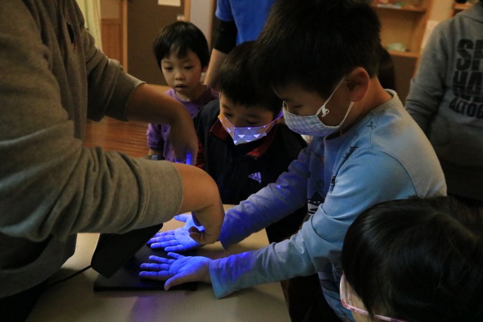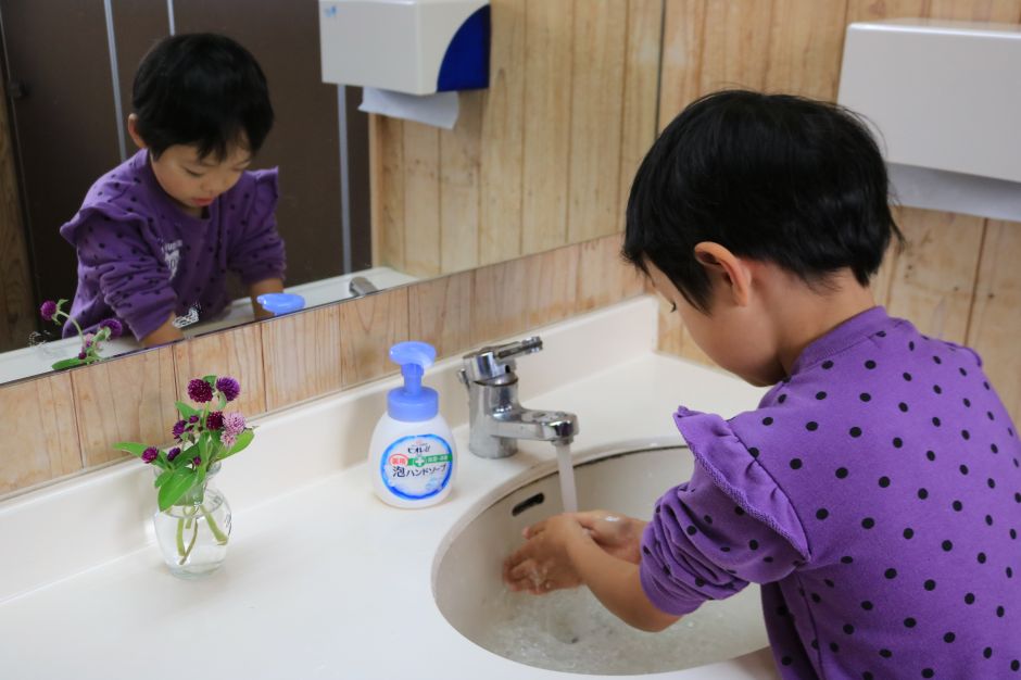 視覚的に洗えてない場所を知れたことで、「もう一回洗ってみる」と子ども達の手洗いへの意識が高まりました。子ども達と一緒に感染症予防をしながら、楽しく元気に過ごしていきたいと思います。