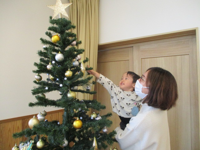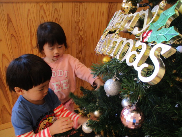 12月に入り、あははもクリスマスの飾りつけをしました。今年も遊戯室にとっても大きなクリスマスツリーが登場し、子どもたちも大興奮!!キラキラと輝く飾りをのぞき込んだり、「どれがいい?」「これが好き!」とお友だちとおしゃべりする姿もみられました。まんまる部門の廊下には、すてきな壁面が出来上がっていました♪あははに来られた時には、ぜひ覗いてみてくださいね。