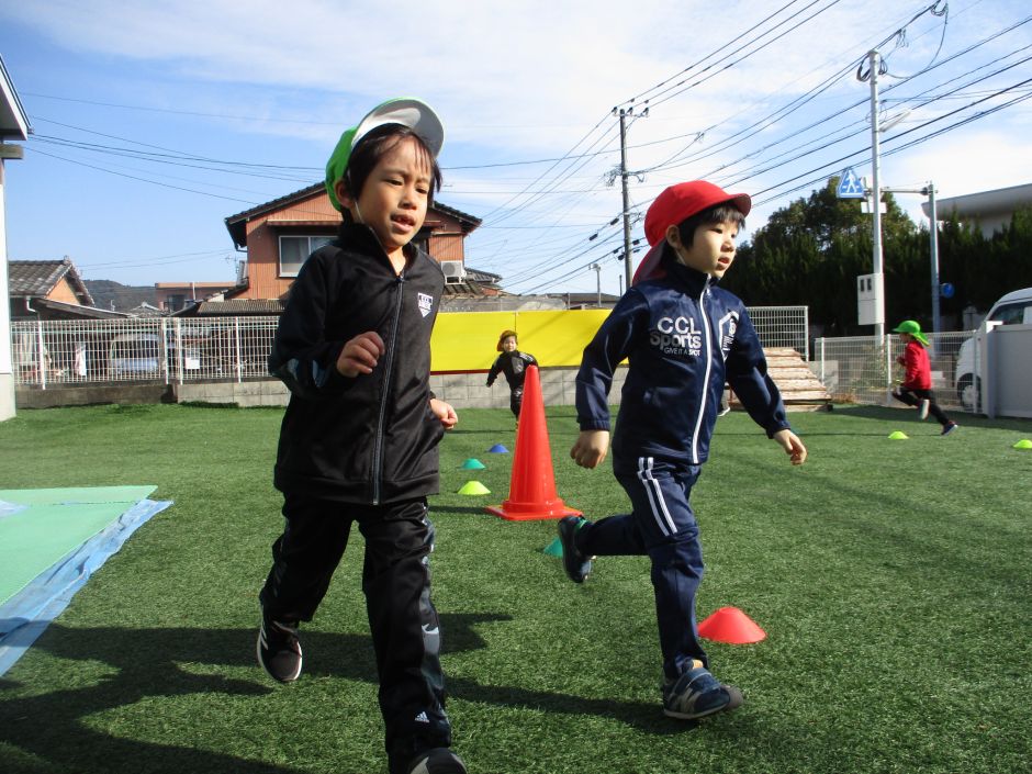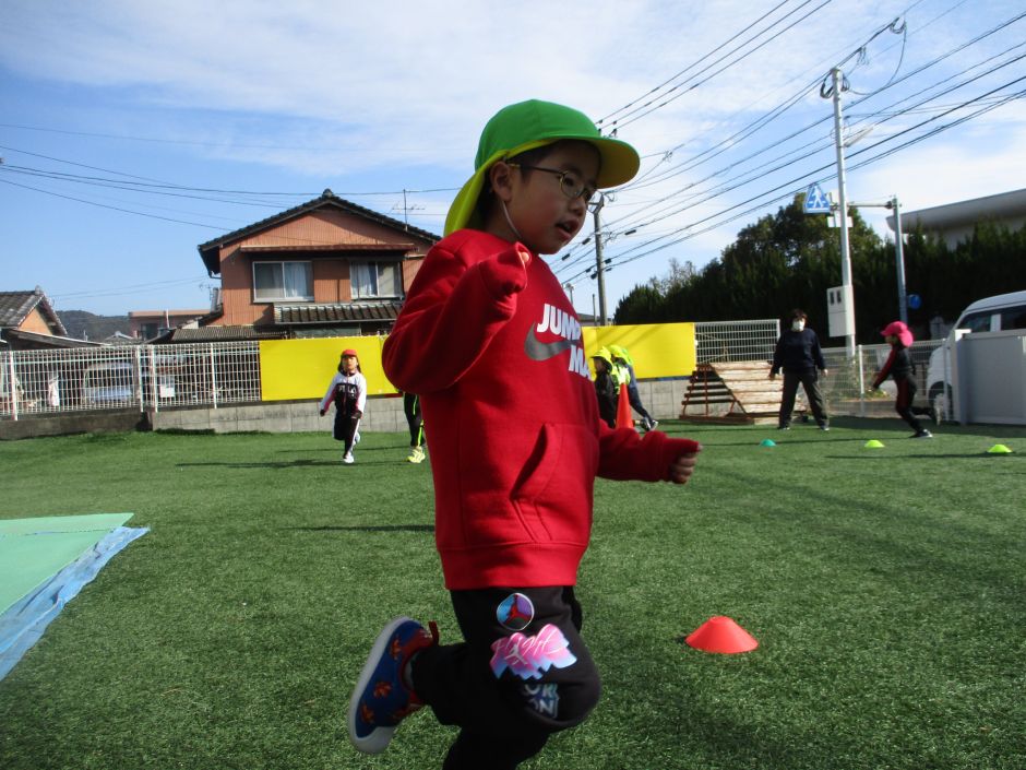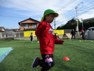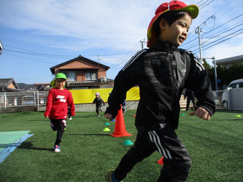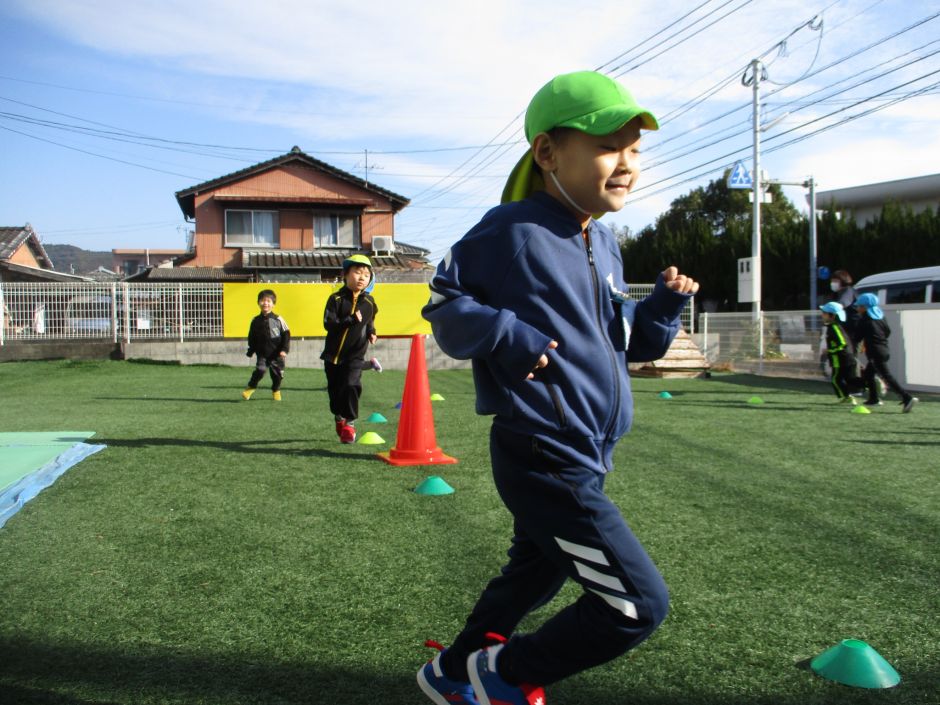 3月に予定しているマラソン大会に向けて練習をはじめました。子どもたちは、普段の服装とは違うジャージを着て練習をする事で、より一層練習に気合が入っています。一人ひとりが“最後まで諦めず走りきる”ことを意識して走っている年長児です。