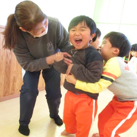 橋がいつ崩れるのか、ドキドキしながら、くすぐられるのを期待している子どもたちでした♡