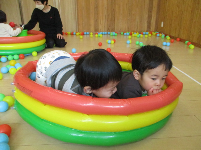 飛び込んでみたり、お友達と一緒に入ってみたり、かき分けたりと思い思いに楽しんでいます♪