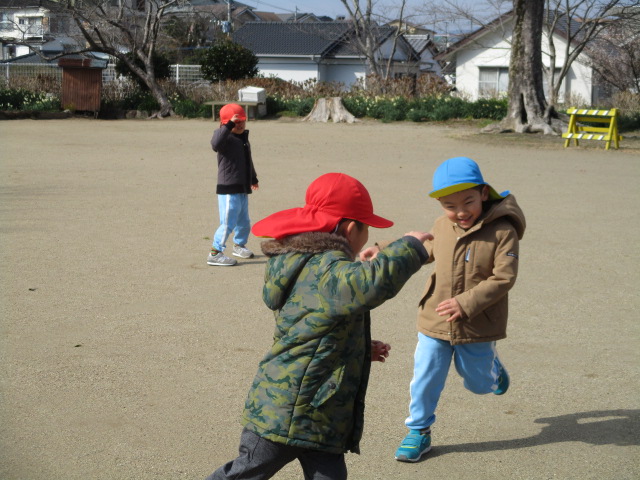 友だちと手をつなぎ、「さむいね~」と言いながら、公園に到着!!