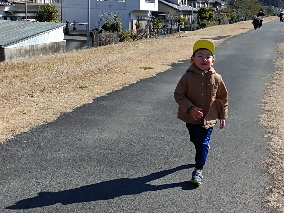 かぜグループは、堤防コースでの初めてのレッツランニングでした。一番になりたくて、ゴール目指して最後まで走りきる子や、前に走るお友だちを追いかけて走ることが楽しくて、最後まで走りきる子や、途中で疲れて歩く子もいました。マラソン大会まで、練習がんばるぞー!